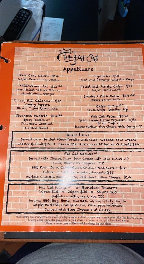Discover The Fat Cat, a vibrant American restaurant located at 1495 Hancock St, Quincy, MA. Offering a delightful mix of comfort food and refreshing drinks, The Fat Cat's menu boasts enticing options like lobster mac and cheese, delectable nachos, and succulent ribs. Enjoy the lively atmosphere whether dining in or opting for takeout. Pair your meal with a selection of local beers, cocktails, or fine wines. With convenient parking options, including street parking and covered spaces, visiting is a breeze. Join us for lunch or dinner, and experience why patrons love returning to this charming neighborhood gem!